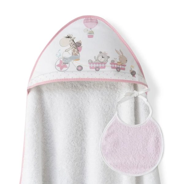 Σετ Μπουρνούζι και Σαλιάρα Jirafa Bicicleta “Λευκό-Ροζ/White-Pink” Interbaby