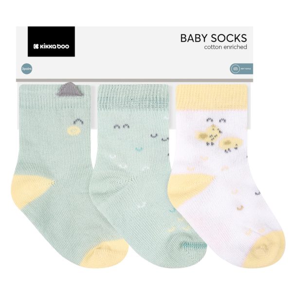 • Σετ 3 ζευγών απαλών βρεφικών καλτσών με κομψό σχέδιο σε ήπιους χρωματισμούς.