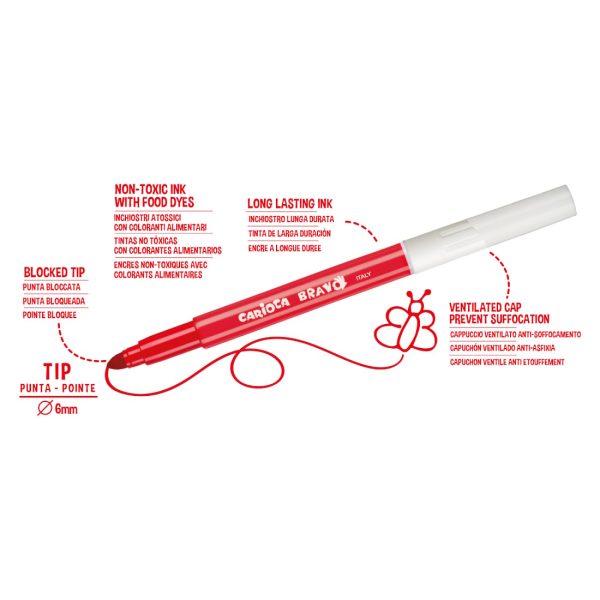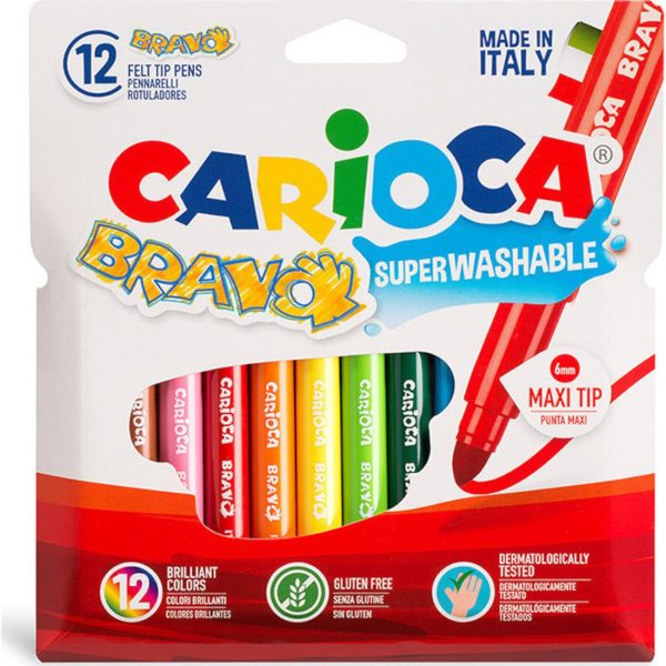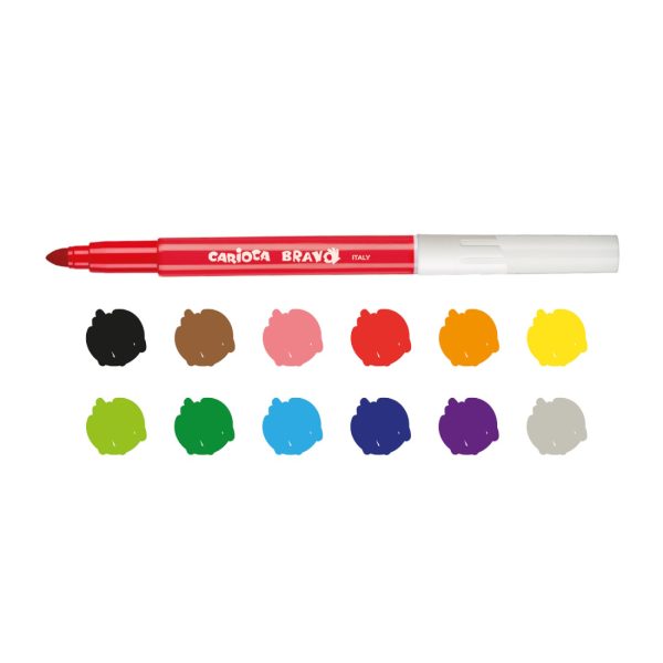 Πλενόμενοι χονδροί μαρκαδόροι της σειράς Bravo της Carioca σε 12 διαφορετικά χρώματα.